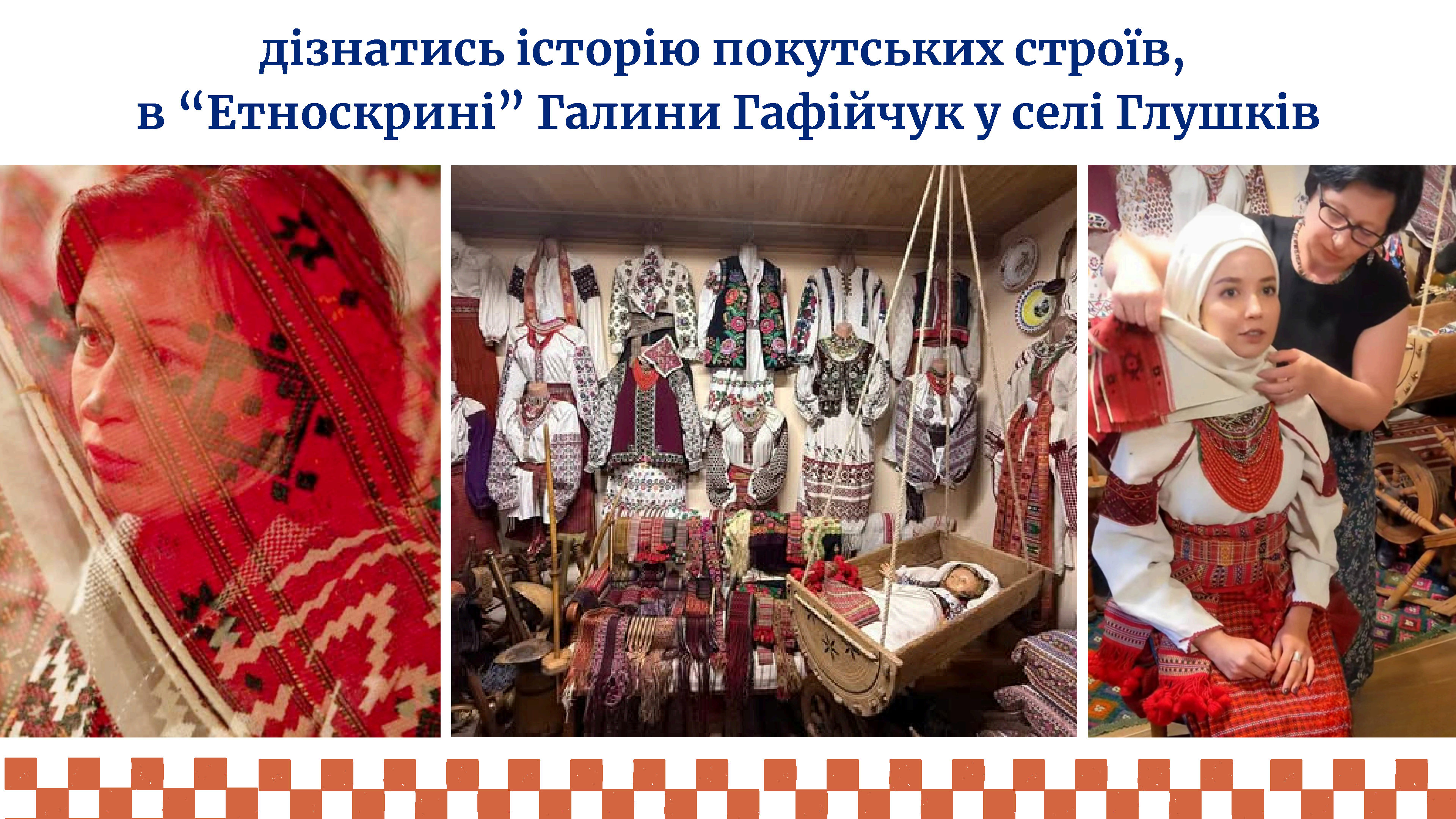«Музей «Етноскриня» - скарбниця народної спадщини. Моя приватна колекція налічує понад 100 унікальних строїв народного одягу кінця XIX - початку XX століття. Також у музеї представлена давня кераміка, предмети побуту та старовинні світлини, що розповідають про життя наших предків.