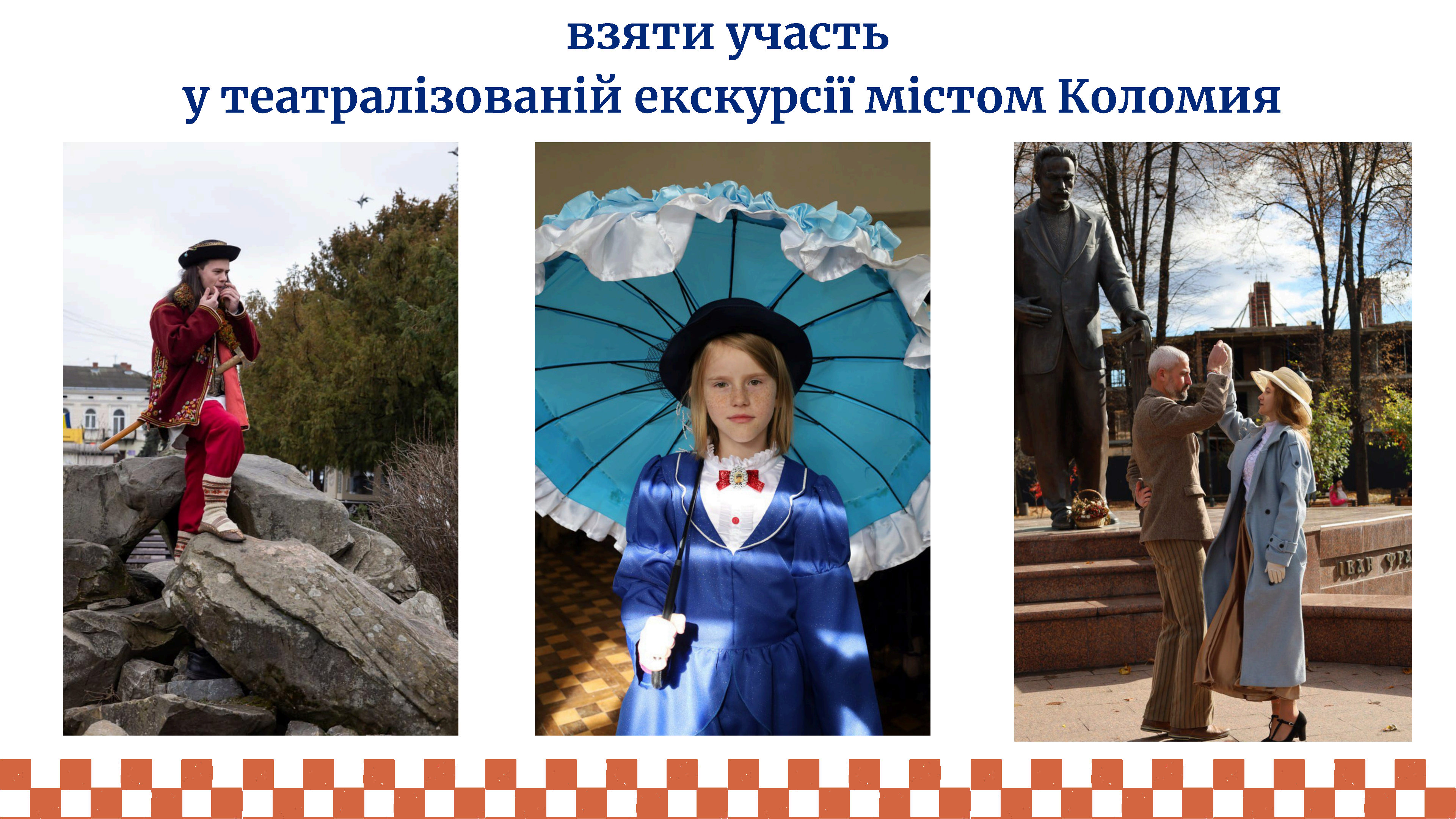 «Коломия відкривається не лише як місто, а як жива історія, до якої можна доторкнутися. Інтерактивна екскурсія перетворює звичайну прогулянку на подорож крізь століття - із зустрічами з Олексою Довбушем, Іваном Франком та Ольгою Рошкевич, чиї голоси й досі відлунюють у старих вулицях. Тут історія оживає в емоціях, у романтичних сюжетах і в живому діалозі з акторами, які ведуть за собою у світ минулого.