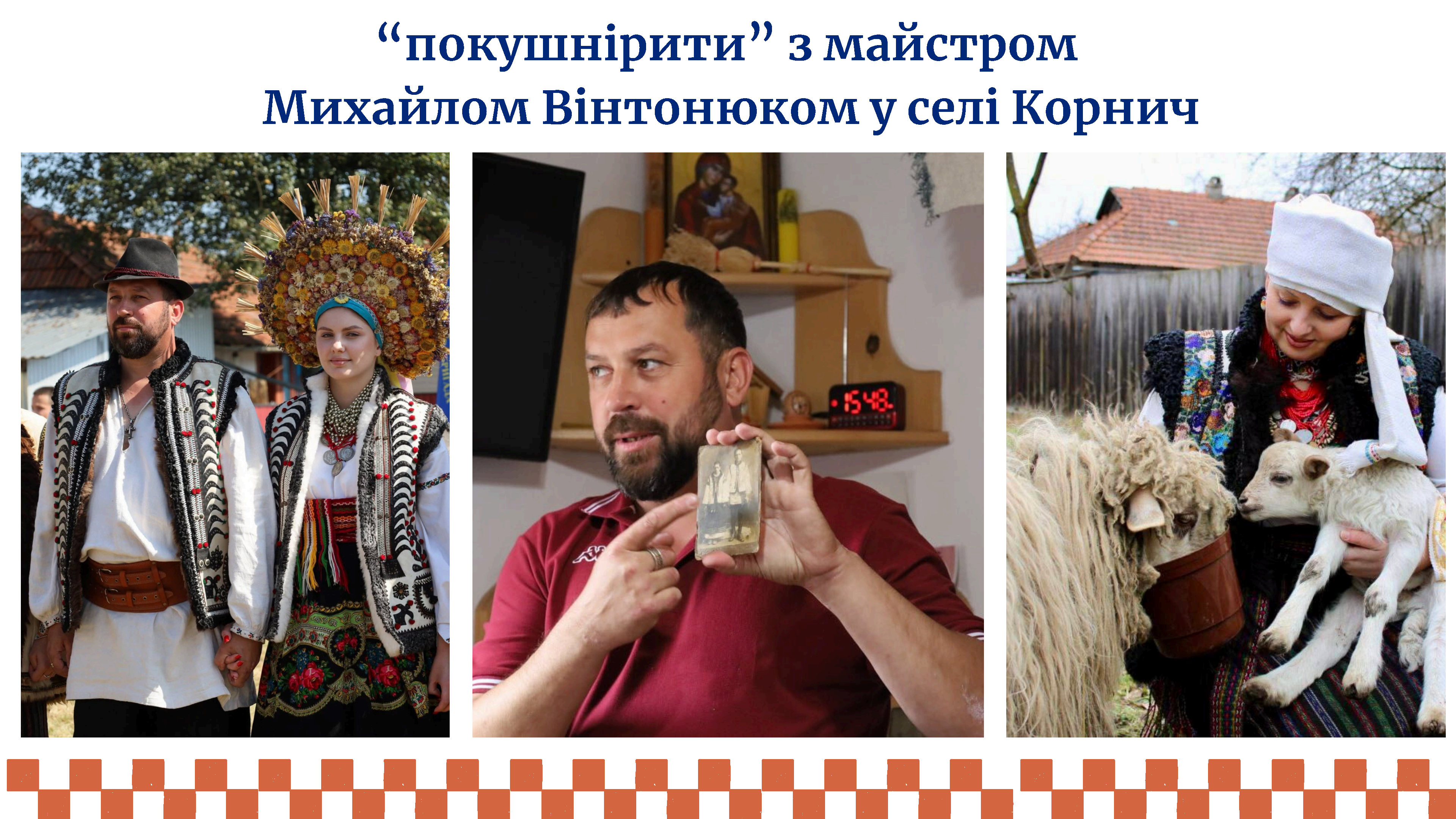 І так було допоки на стіні в однієї поважної пані не побачив відоме ретрофото весільної пари із села Корнич, яке змінило моє життя на «до» і «після». На світлині були зображені знатні на той момент майстри Михайло та Софія Гнатюки, які займалися вже майже втраченим ремеслом - кушнірством. А ця поважна пані - Марія Антонюк - виявилась їх дочкою. Вона також займалась все своє життя цим ремеслом і навчила мене.