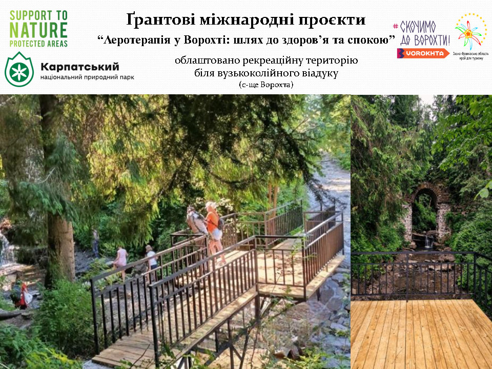 Також за кошти ґрантової підтримки цього проєкту в області реалізовані 4 туристичні проєкти-переможці Конкурсу місцевих ініціатив в Українських Карпатах: «Промоція екологічного туризму у Верховинській громаді шляхом облаштування еколого-освітньої стежки на комплексі боліт урочища Гучівка»; «Аеротерапія у Ворохті: шлях до здоров’я та спокою»; «Скочимо до Ворохти! Створення туристично-інформаційного центру у Ворохтянській громаді»; «ЕРА: еко-виховання».