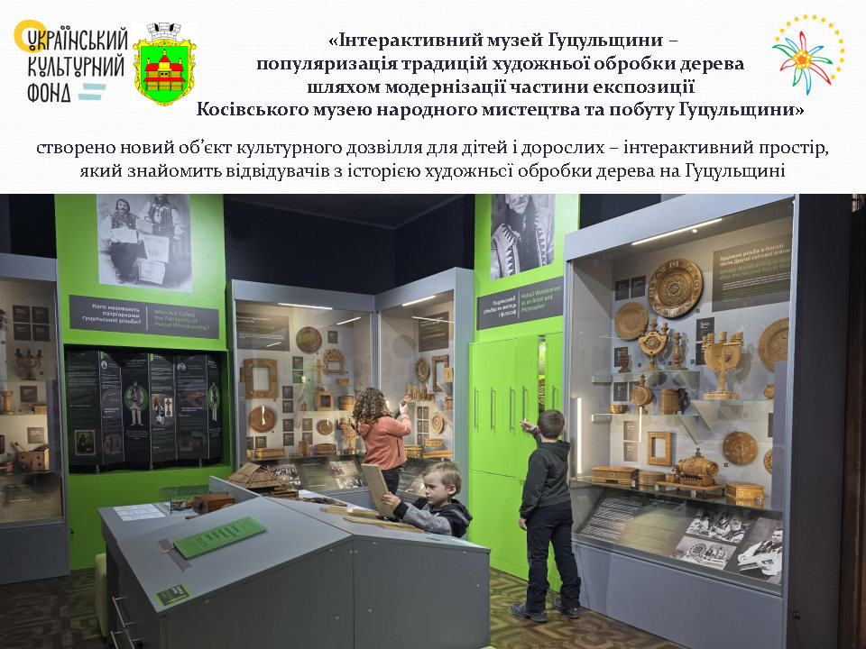 У Косівському музеї народного мистецтва та побуту Гуцульщини створено інтерактивний простір, який знайомить відвідувачів з історією художньої обробки дерева на Гуцульщині.