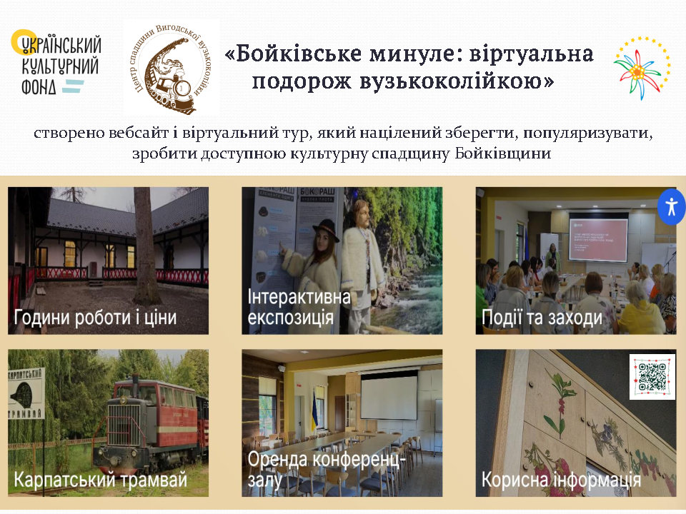 Центром спадщини Вигодської вузькоколійки створено вебсайт vyhodaheritage.com.ua і віртуальний тур, який націлений зберегти, популяризувати, зробити доступною культурну спадщину Бойківщини.
